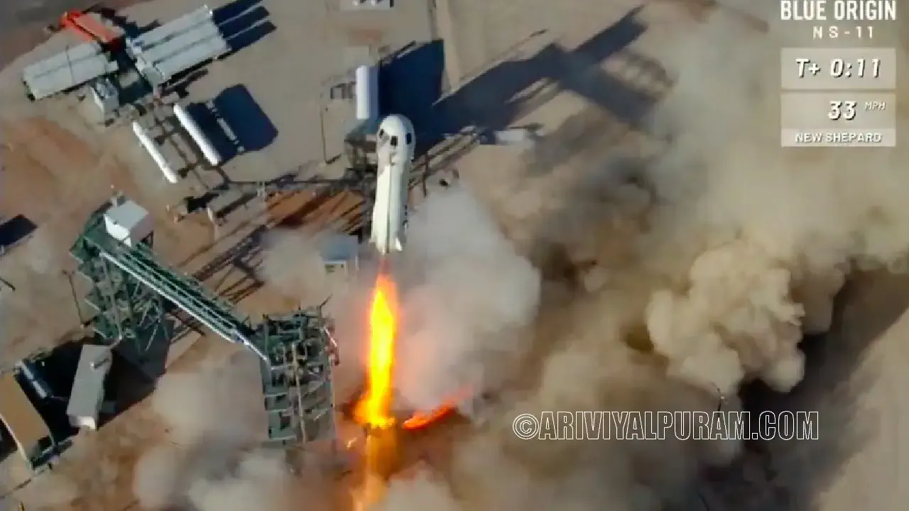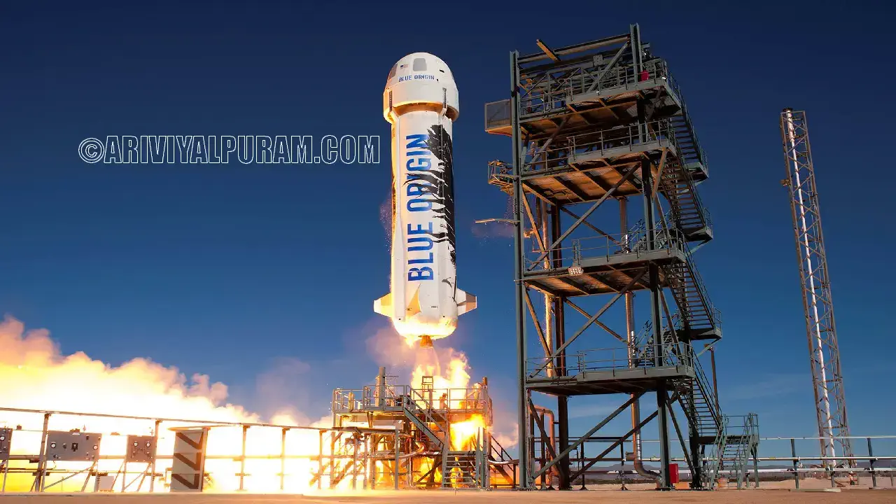 அமேசான் தலைமை நிர்வாக அதிகாரி ஜெஃப் பெசோஸின், ப்ளூ ஆரிஜின் என்ற நிறுவனத்தின் மூலம் விண்வெளி செல்ல முயற்சி மேற்கொண்டு வருகிறார், முதல் புதிய ஷெப்பர்ட் விண்கலத்தை அதன் புறமைப்பு அவிழ்க்கப்படாத சோதனை விமானத்தின் மூலம் புறநகர் பயணங்களுக்கு மக்களை பறக்க வைக்க உருவாக்கப்பட்டுள்ளது.