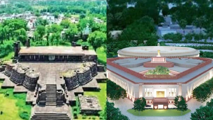 மத்திய பிரதேசத்தில் விடிஷாவின் விஜய் கோவில் மற்றும் இந்தியாவின் புதிய நாடாளுமன்ற கட்டிட படங்கள் சமூக ஊடகங்களில் பெரும் வைரலாகி வருகின்றன. படத்தைப் பார்க்கும்போது, பலர் இந்தியாவின் புதிய பாராளுமன்ற கட்டிடத்தை அமெரிக்காவின் பென்டகனின் சாயல் என்று அழைக்கின்றனர். ஆனால் அதன் வடிவமைப்பு விடிஷாவின் விஜய் கோவிலை ஒத்திருக்கிறது.