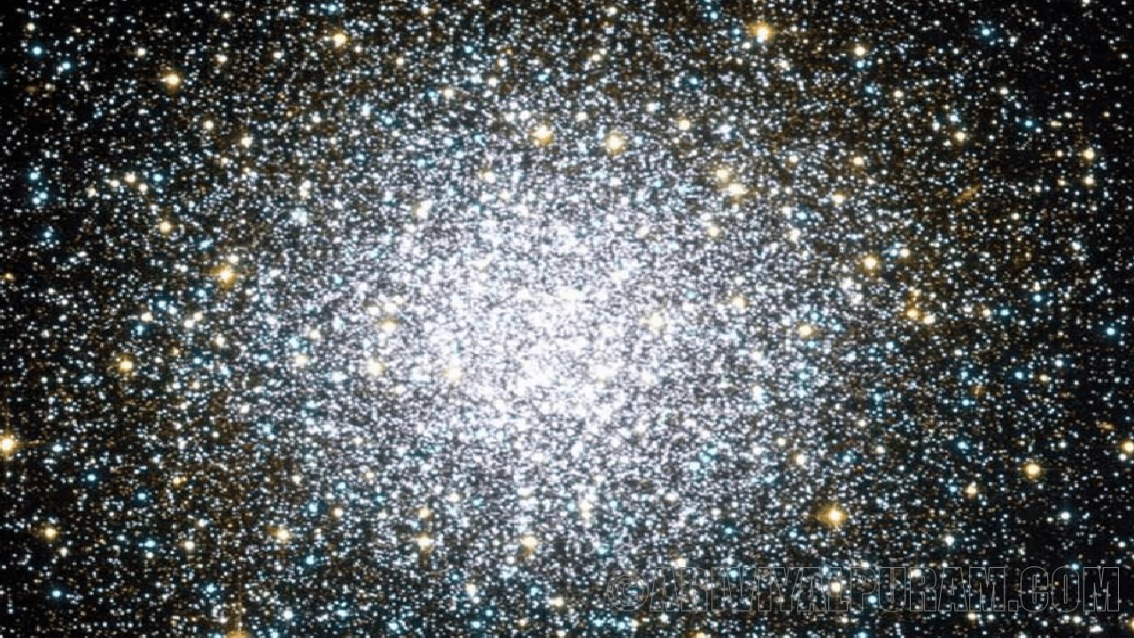 திகைப்பூட்டும் ஹப்பிள் புகைப்படம், தனுசு விண்மீன் (தி ஆர்ச்சர்) விண்மீன் மண்டலத்தில் சுமார் 100,000 நட்சத்திரங்களைக் கொண்ட மெஸ்ஸியர் 55 (எம் 55) ஒரு கோளக் குழுவின் பாக்கெட்டைக் காட்டுகிறது. இந்த நட்சத்திரங்களில் சில, குறிப்பாக M55 இன் மையத்தில், மாறும் பிரகாசத்துடன் மின்னுவதாக வானியலாளர்கள் கூறுகின்றனர். M55 விண்மீன்களின் ஒருங்கிணைந்த ஈர்ப்பு விசையை ஒரு கோள வடிவத்திற்கு இழுக்கிறது, இது பால்வீதி விண்மீனை ஆக்கிரமித்துள்ள 150 க்கும் மேற்பட்ட பொருட்களால் பகிர்ந்து கொள்ளப்படும் பொதுவான பண்பாகும்.